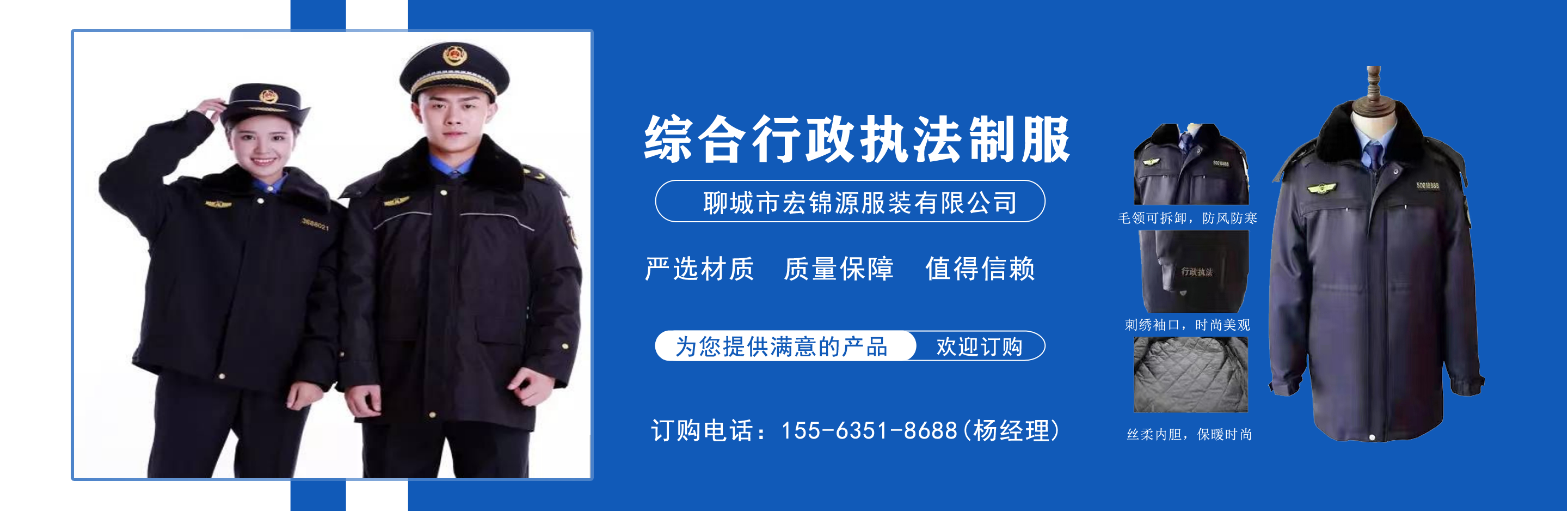 聊城市宏錦源服裝有限公司位于江北水城—山東聊城,地理位置優(yōu)越,交通便利。公司主營綜合行政執(zhí)法制服,交通執(zhí)法服裝,應急管理執(zhí)法標志服,市場監(jiān)督管理標志服,農(nóng)業(yè)執(zhí)法服裝,生態(tài)環(huán)境保護制服,文化市場執(zhí)法服,城管標志服裝廠,衛(wèi)生監(jiān)督制服,六部門標志服廠家等,值得信賴! 公司生產(chǎn)的標志服裝據(jù)有造型美、板型新、多次水洗不退色、不變型、不起泡?! 罢J真辦事,踏實做人”是宏錦源的企業(yè)精神,我們的宗旨是:“用服務與真誠來換取你的信任與支持,互惠互利,共創(chuàng)雙贏!”我公司愿與國內(nèi)外各界同仁志士竭誠合作,共創(chuàng)未來企業(yè)目標:在已選定的服飾領域中,成為行業(yè)的卓越者。 經(jīng)營理念:追求產(chǎn)品卓越,為用戶提供完美、高效的服務。...